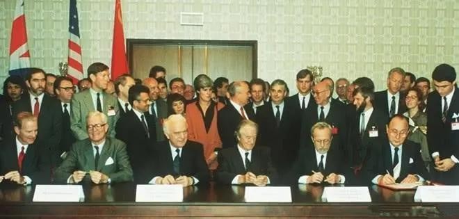 最后两德与第二次世界大战后占领德国的四国(美、英、法、苏)达成条约,允许统一之后的德国成为完全独立自主的国家,四个占领国的特权全部取消。