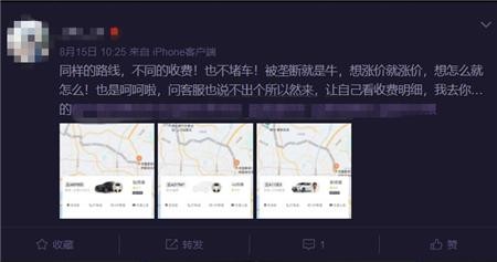 7月中旬的一天,上午9点多,吴先生打“滴滴”到王大桥邮政储蓄所,约16公里的路程,花费22元。7月底,吴先生再次使用“滴滴”,同样的路程,时间也差不多,花费了26元。多了4元钱,吴先生没有放在心上。