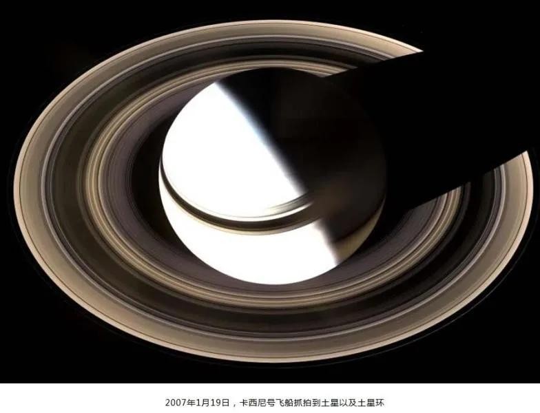 土星拥有着一条光环(实际上很多条明暗相间的光环),主要由冰和碎石组成(碎石和冰的直径多数是几厘米到几十厘米,最大也就一米左右)。从远处看去,美丽的光环令人向往。