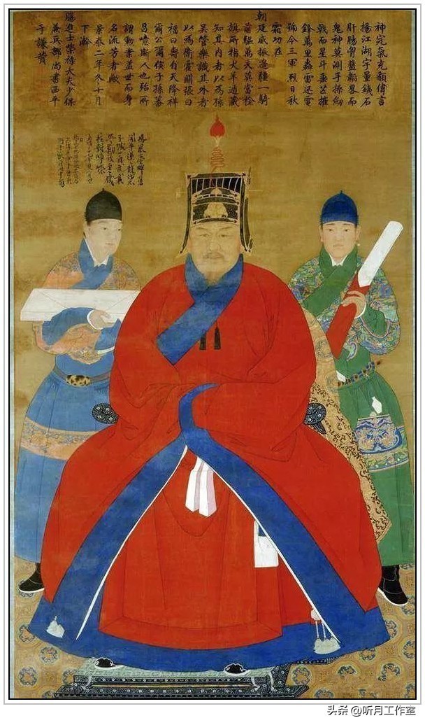 明代民族英雄于谦《颖国武襄公杨洪像赞》此图为绢本设色,尺寸纵220厘米、横127.5厘米,藏于美国国立亚洲艺术馆。图为朝廷命画师为功臣杨洪所绘,由于谦题赞。然题款存争议,或疑为后人伪作。于谦书法风格独特,其字不以坚定刚硬、孔武霸气见长,而是清秀柔美,整体风范独树一帜。他借鉴赵子昂之书,又加以创新,使字体更显俊秀。尽管《颖国武襄公杨洪像赞》题款存疑,但于谦的书法成就仍值得肯定。