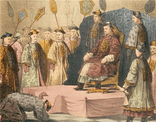 习惯了被周围小国追捧的中国,总是高高在上,认为阿美士德不过是从西方小国远道而来的使臣,所以强行逼着阿美士德等人下跪。