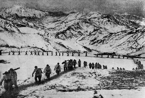 战士们在一口炒面、一口雪的艰难困境当中,死死咬住美军不放。