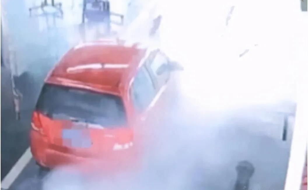 图中这位工作人员,在车辆年检时猛踩油门,直接把水箱拉爆了。