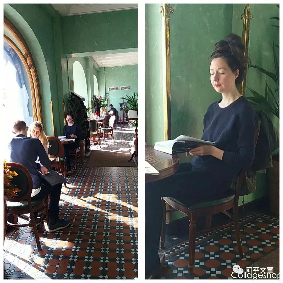 教堂对面是蓝绿灰色交辉的图书大厦,读过几本外国小说,知道有教养的欧洲女子注重内外兼修,美丽风情,没想到在这里我有了意外的发现。在安静的二楼一隅:一位女子像油画中的古典美女,正静静地捧读一本厚书。她衣着深蓝色衣裙,长长的秀发随意地挽成高高的发髻。白皙的颈部低垂,高贵淡雅的唇红,悠闲婉约的神态,真是美极了!那气质直逼夏洛蒂.勃朗特笔下的“简爱”女主人公。