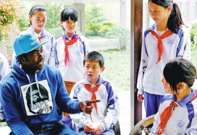 商东外国语实验学校的外教和学生亲切交流