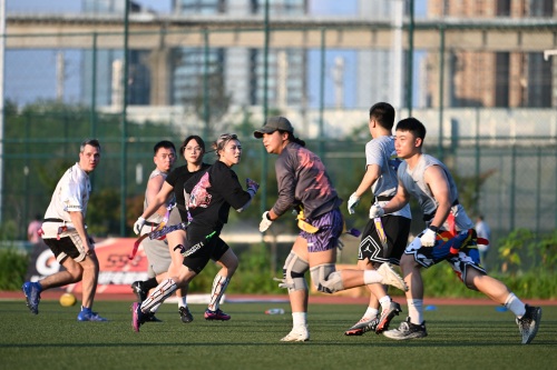 除了攀岩,吴庆文还是一名资深的腰旗橄榄球玩家。2022年起,她几乎保持着一周3至5次的训练频率,在一次次带球突破中,体会着一次次沸腾的快乐。