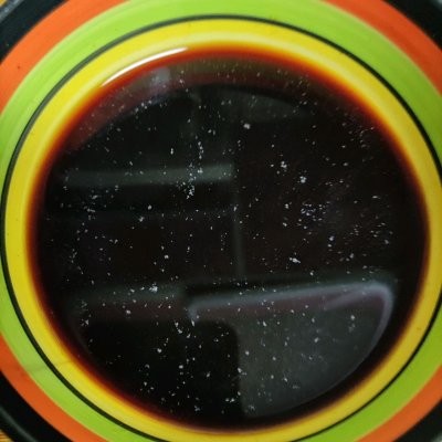 4、同时,准备一下灵魂酱汁。少许老抽、一勺蒸鱼豉油、两勺生抽、少许香醋、少许番茄酱、少许蚝油、五勺水。