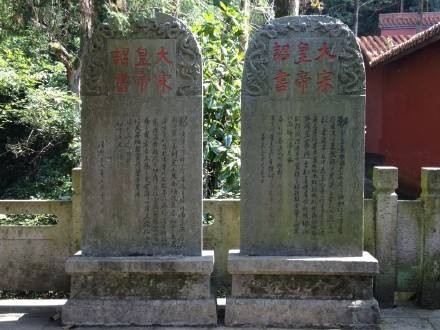 金华观在双龙洞南侧,民间称黄大仙观,相传为道仙赤松子安期生登真羽化之地,最早建于晋代,供奉黄大仙。历代香火鼎盛,每年观里都差遣道士掌管北山三洞香火。到宋代至和七年,即以洞天福地重建,并有“天下名山”匾额一方悬挂其上,因而闻名。