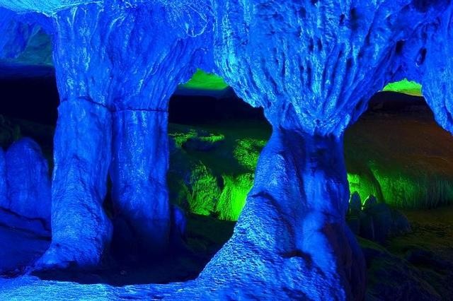外洞厅北有一黄色“石瀑”,就是“吕先生藏身”景点,相传八仙之一 的吕洞宾曾隐身于此。靠厅北尽头就是“骆驼仰首”、“石蛙窥穴”、“雄狮迈步”、“金鹞展翅” 等景观,特别是洞中的岩溶景观"仙人田”层层叠叠,不由产生来到世外的感觉。