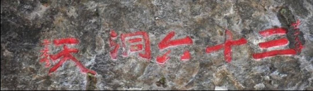 外洞洞壁有众多摩崖石刻,洞口北壁“双龙洞”三字,传为唐人手迹,后由民国交通次长临摹刻撰;南壁“洞天”二字,为宋代书法家吴琳的墨宝;“三十六洞天”五个大字,则为国民党元老、近代书法家于佑任先生之手笔;最里边石壁上还有“水石奇观”石刻和清代名人探洞游记碑刻。