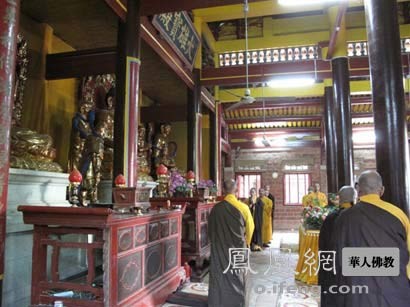 南安雪峰寺早课(图片来源:凤凰网华人佛教 摄影:印媛)