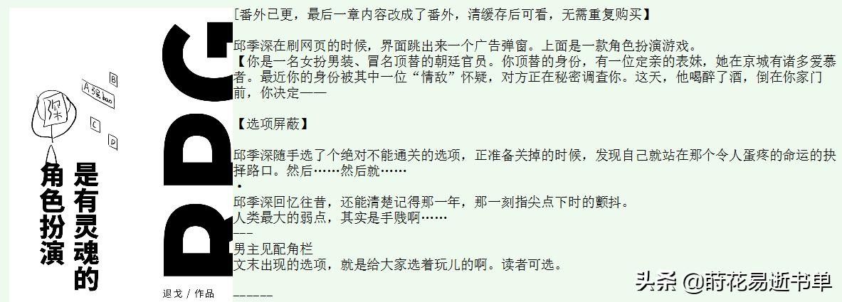 4、《角色扮演是有灵魂的》作者:退戈 穿越 系统悬疑