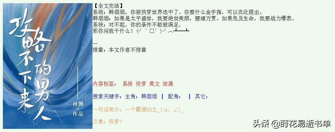 2、《攻略不下来的男人》作者:袖侧 系统快穿 攻略