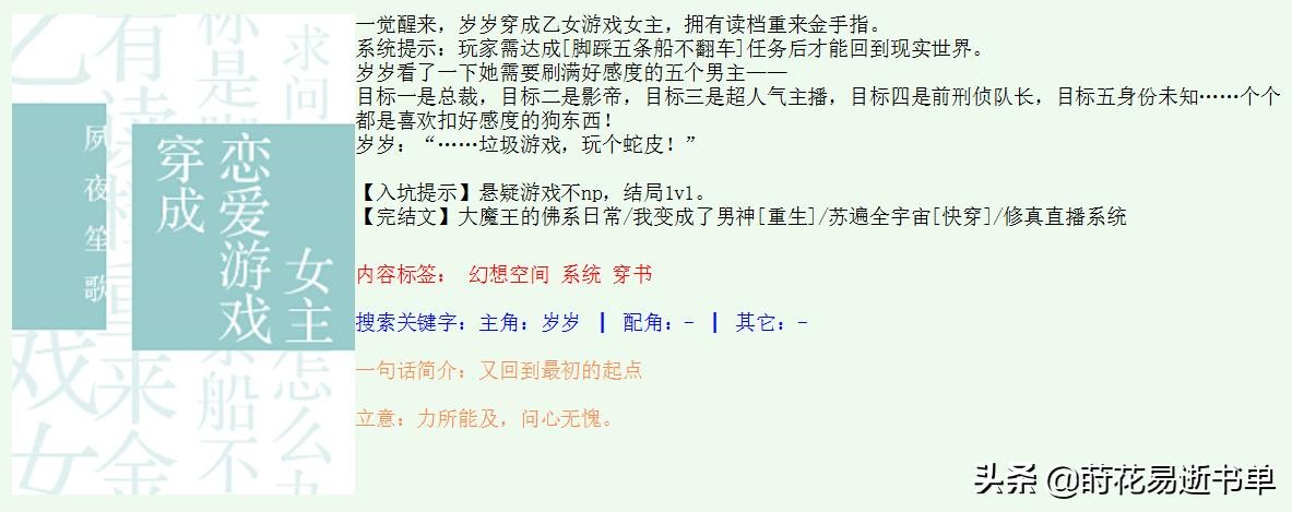 「系统攻略 」:五本完结文推荐,喜欢这类的不要错过