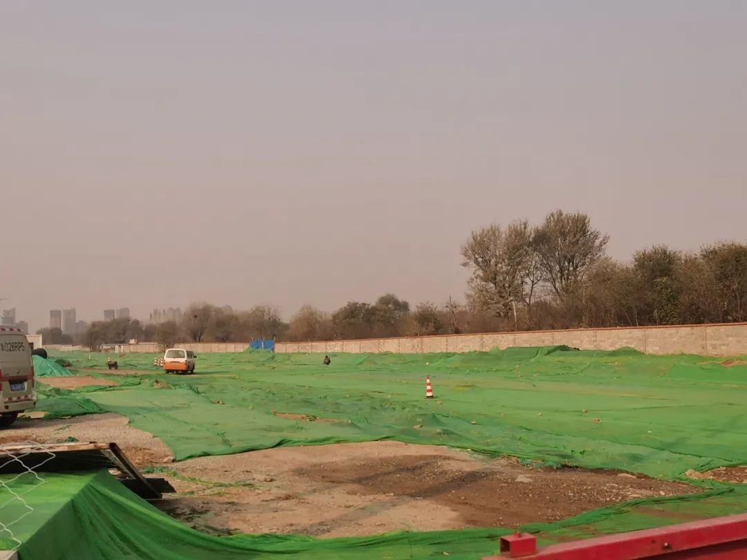 在这条“断头路”的中部和东侧,施工单位对裸露地面、物料进行苫盖,避免大风扬尘,造成空气环境污染。同时,记者观察到,施工人员和车辆正有条不紊地进行作业,井盖设施也已经“上新”。
