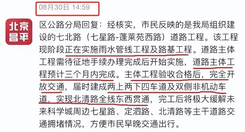 此前,区公路分局曾回复称,道路主体工程预计三个月内完成,验收合格后完全开通。开通后两上两下四车道及双侧非机动车道,实现北清路全线东西贯通!