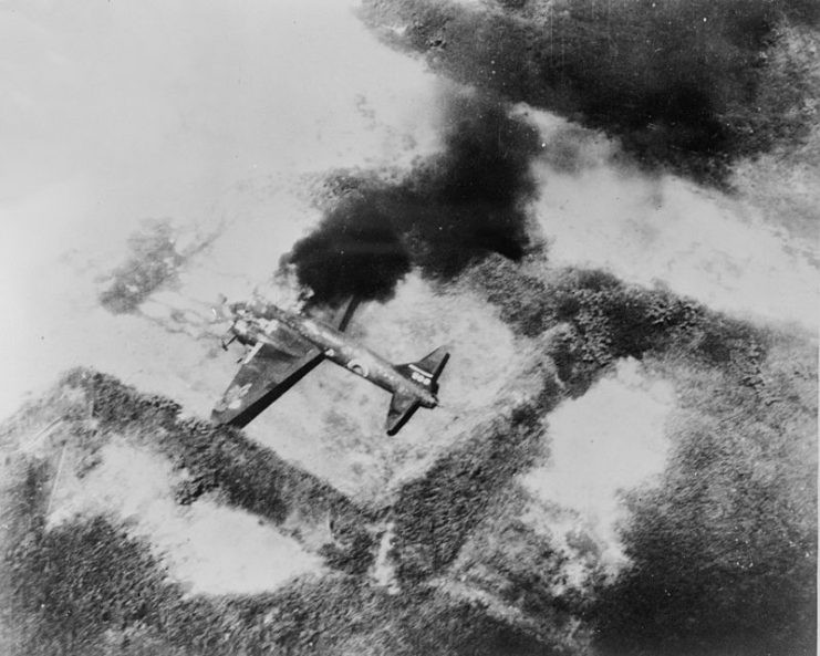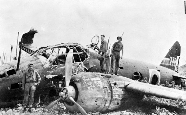 ▲一架被美军击毁的一式陆攻