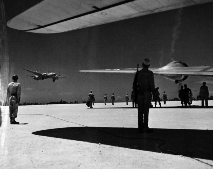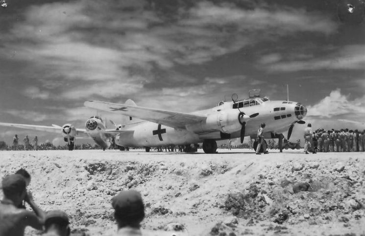 ▲1945年8月19日,搭载日军投降代表团抵达马尼拉伊江岛机场的一式陆攻