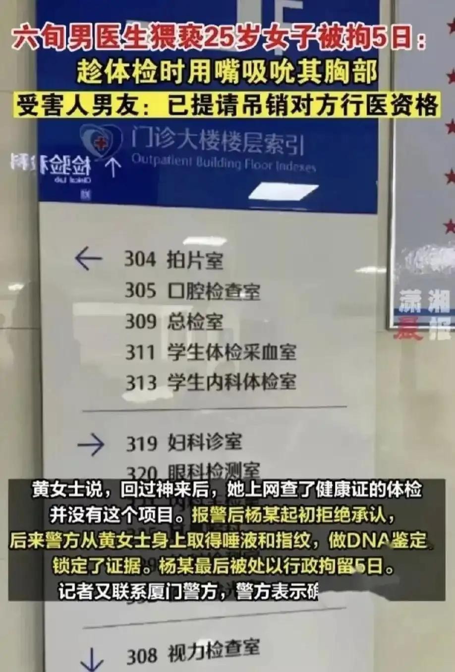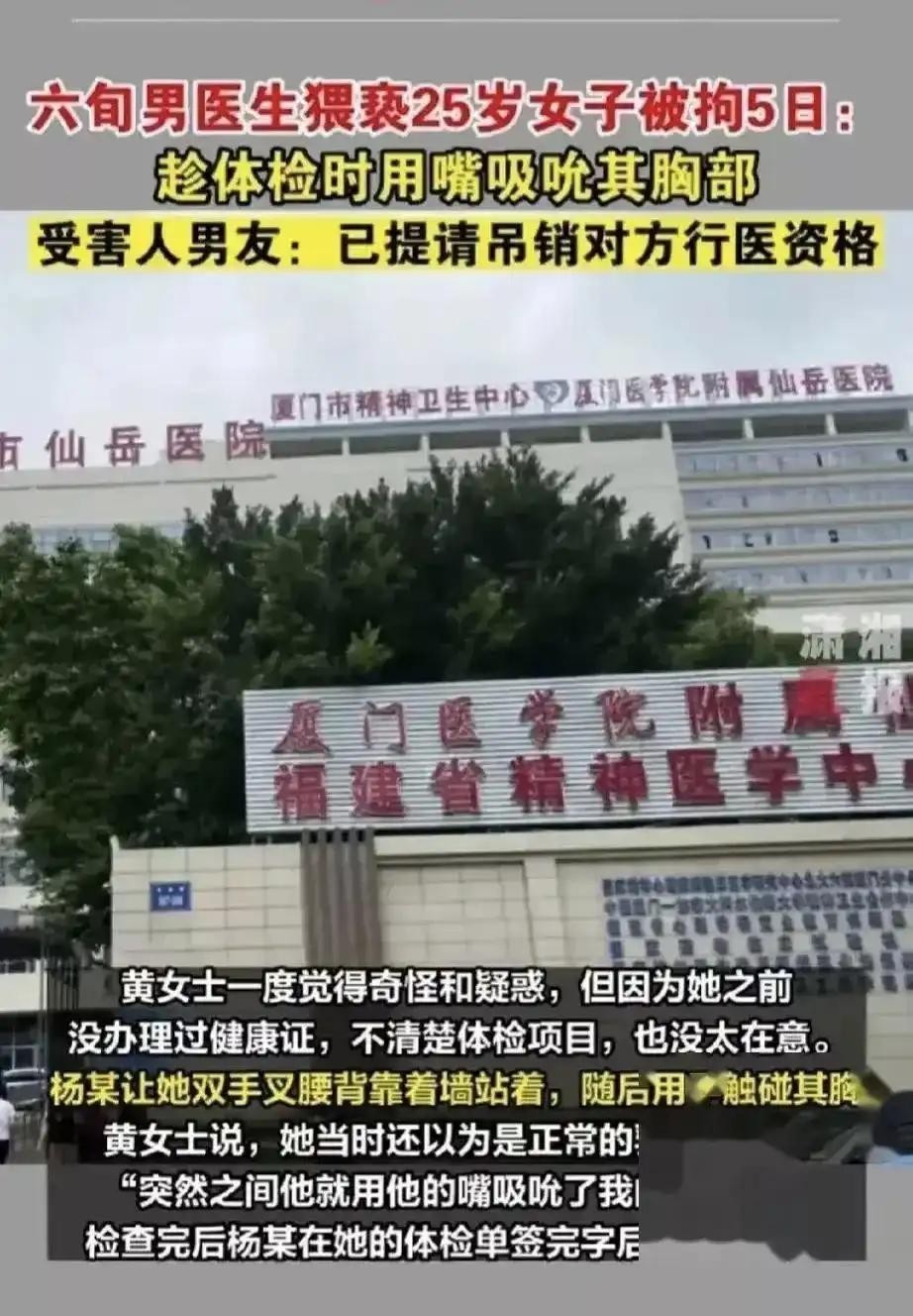 而最近,一名25岁女孩在厦门某医院办理健康证时,却遭遇了一名60多岁的男医生的猥亵。