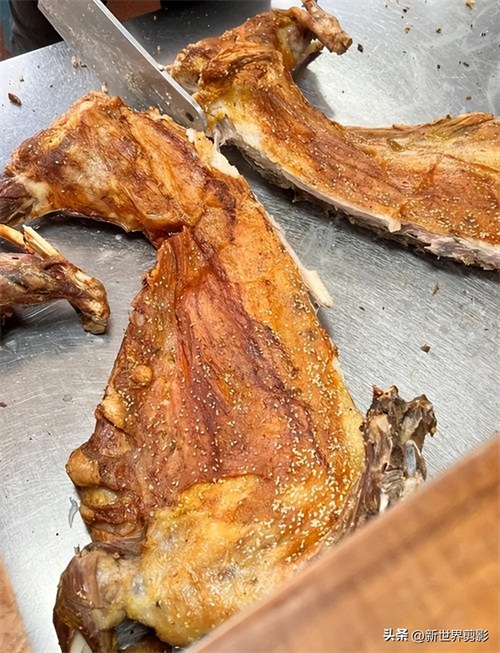 烤全羊:外皮酥脆,肉质鲜嫩,推荐“海军馕坑肉”老店,搭配凉皮和酸奶。