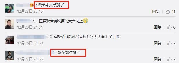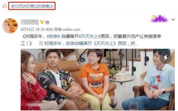 而时隔五年之后,欧弟本人再次坐实了自己退出《天天向上》的真正原因。12月20日,欧弟点赞了一则关于自己退出《天天向上》的博文,这一篇博文也可以说是欧弟的一个采访回忆录,文中提到的内容,就是欧弟早年的采访实录。