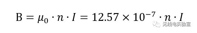 其中n为线圈密度,单位:匝/米;I为线圈电流,单位:安培;B为磁感应强度,单位:特斯拉。通常有限长的螺线管也可以按此计算,这里我们只要用它来估算线圈产生磁场的数量级。