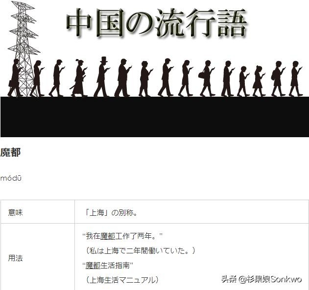 就连专门给日本人学习中文的教学网站“Chinese Station”上,也有专门一个条目来介绍“中国の流行語――魔都”。
