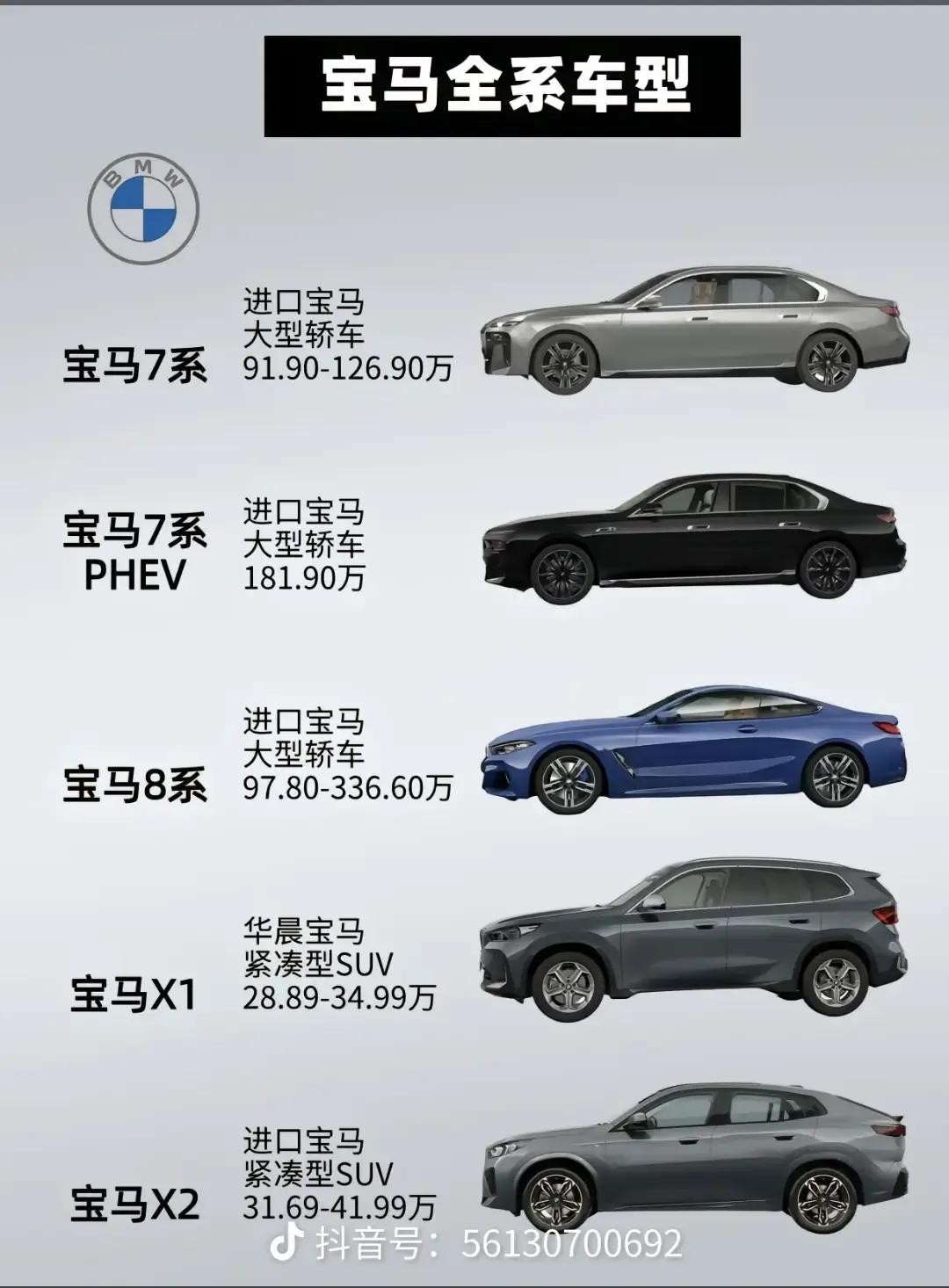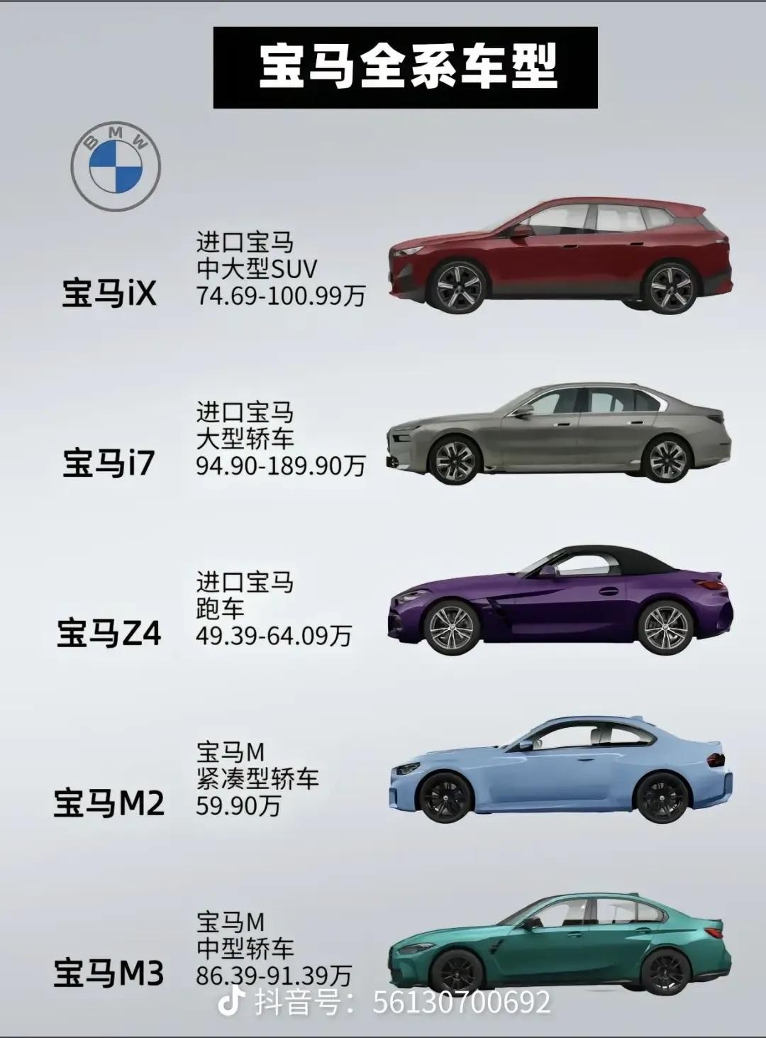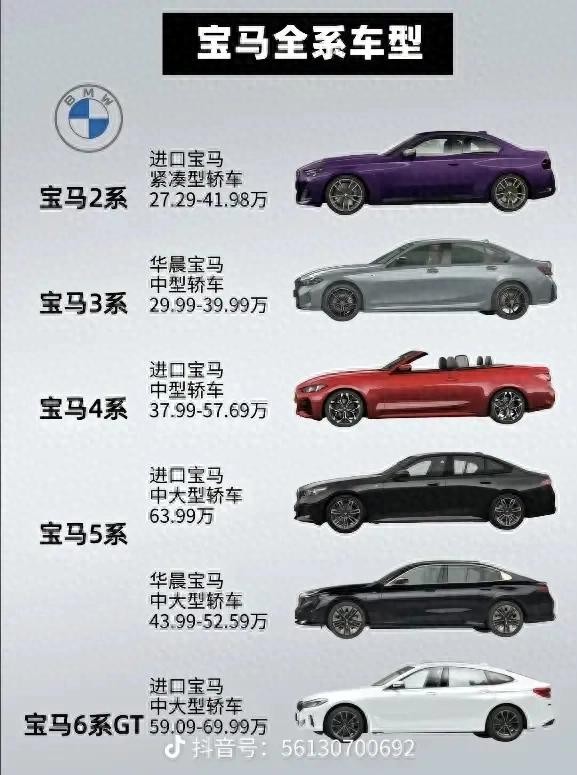 总的来说,宝马的全系车型覆盖了不同的价格区间和细分市场,无论是追求经济实用、操控性能,还是豪华舒适、环保节能的消费者 ,都能在宝马的车型阵容中找到适合自己的车型。大家可以根据自己的预算和喜好来选择,说不定哪天就能开上自己心仪的宝马车啦!