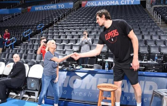 而作为普通人的我们,更不要轻易和博班合影了,当时在快船主场,一位女球迷就找到博班进行合影,我们不难发现,博班仅用半只手掌就将这位女球迷的手牢牢握住,并且在博班面前,她的胳膊几乎和一根火柴棍一样,看样子稍微一用力就能掰断。