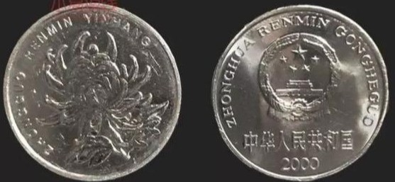 这枚硬币又叫2000年牡丹一元,正面采用国花牡丹图案,象征雍容华贵,采用钢芯镀镍材质,背面是国徽图案,本来这个系列的一元硬币,是发行于1991年至1999年,2000年的时候,央行已经发行了新版的菊花图案一元硬币,按道理,2000年的牡丹图案一元硬币应该不再生产发行。但造币厂又生产了少量2000年的老版牡丹硬币,装桢在套装币中,它们没有流通发行,数量极少,目前价值1000多元一枚。