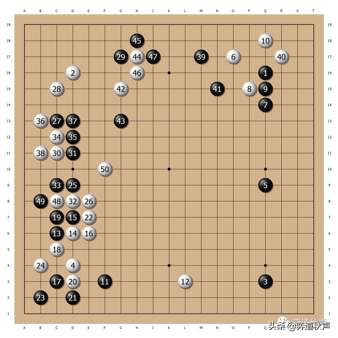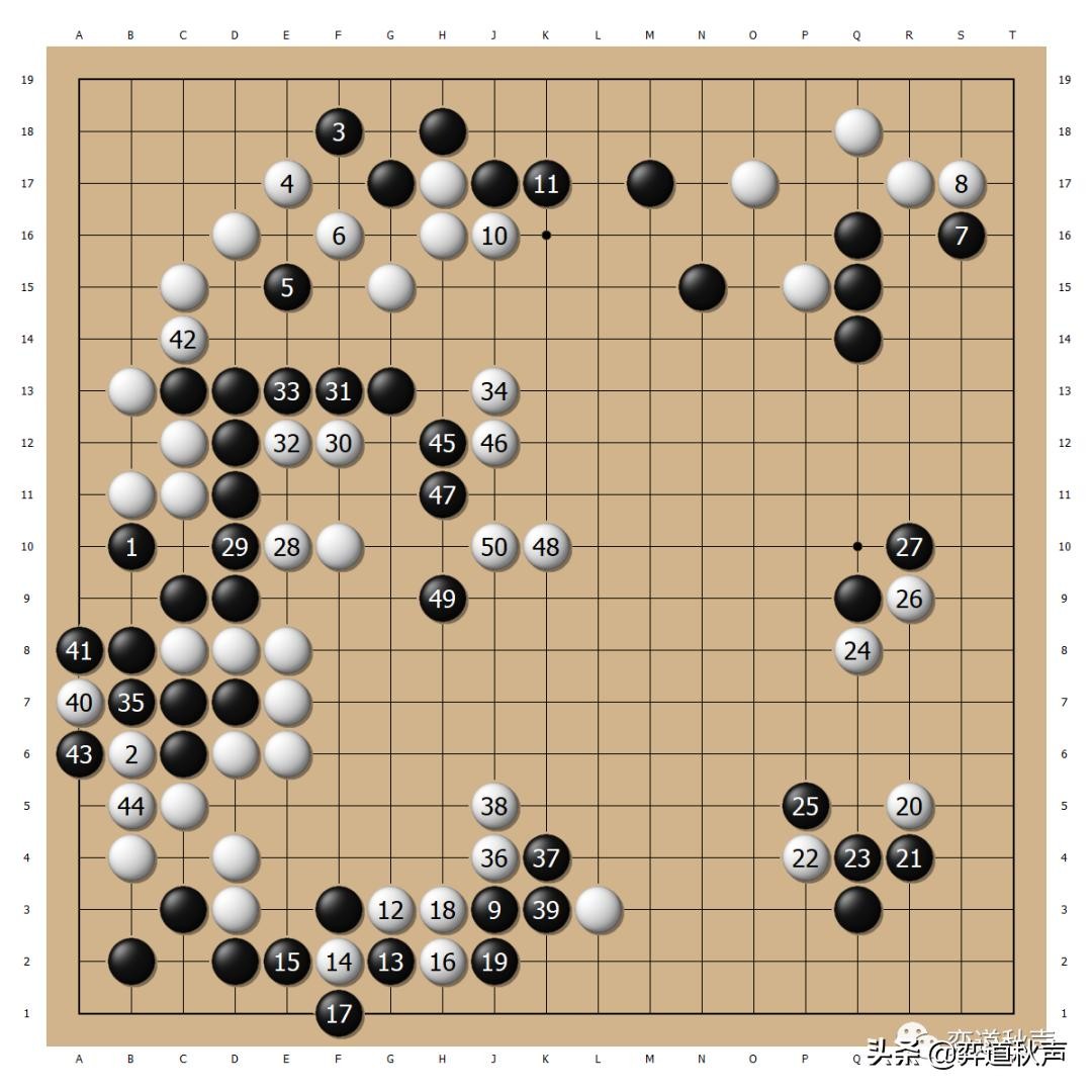 左下角定式后,黑27拆得过大,白30打入严厉。