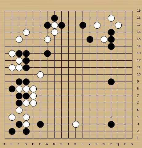 陈嘉锐白28开始,猛攻黑棋左边大龙。