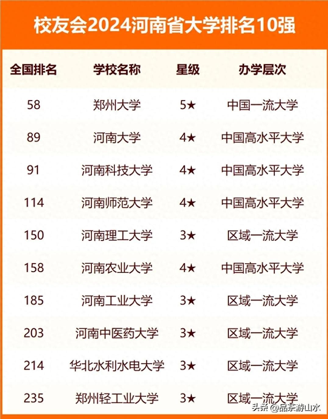 2024校友会河南省高校排名榜单