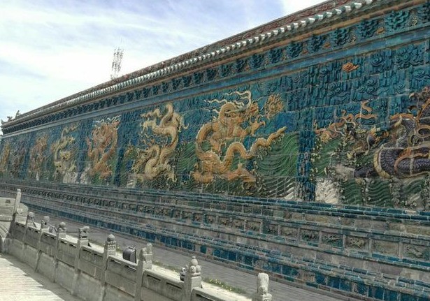 中国有三大九龙壁,其中两处九龙壁在北京,分别是故宫九龙壁和北京北海九龙壁,另一处则是著名的大同九龙壁。相比北京的九龙壁,大同的九龙壁长45.5米、高8米、厚2.02米,是目前我国发现的最大的九龙壁。而且始建于明洪武二十五年至洪武二十九年间(1392-1396),距今614年,比著名的北京北海九龙壁建造的时间早了360年左右。有一种说法是大同九龙壁代表着当时明朝的九大藩王,其中代王作为坐拥重兵的藩王重要性不言而喻,代王的妻子是徐达的女儿,明洪武五年,明朝开国大将重建大同古城,以巨型条石做基础,城墙内采用三合土夯筑,外包采用17公斤的青砖,高14米,垛墙又高5米,也就是现代大同古城的基础,相比盛世下的古城,大同古城显得更加的宏伟壮观。