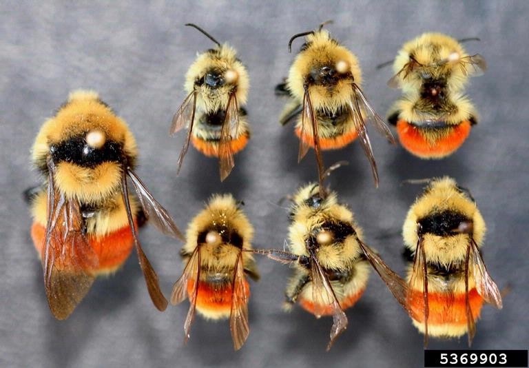 大黄蜂又叫熊蜂,是蜜蜂科的一类,体型硕大,在蜂类中属于重量级。由于多年来农业活动的侵扰,加州有4个大黄蜂物种Crotch、Franklin’s、Western和Suckley’s cuckoo陷入了困境,面临着灭绝的威胁,加州鱼类和猎物委员会因而在2019年将它们列入了濒危物种法保护的物种。