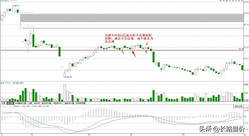 所以在正常缩量震荡过程中,出现的阳包阴或者阴包阳,都是属于正常震荡的范畴,代表不了走强或者走弱,而要想在震荡过程中,走出趋势,就要看在震荡过程中,是阴线开始放量还是阳线开始放量,哪方开始放量,那么后期基本上就会往哪方面去走了。