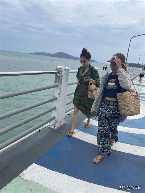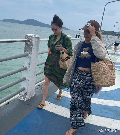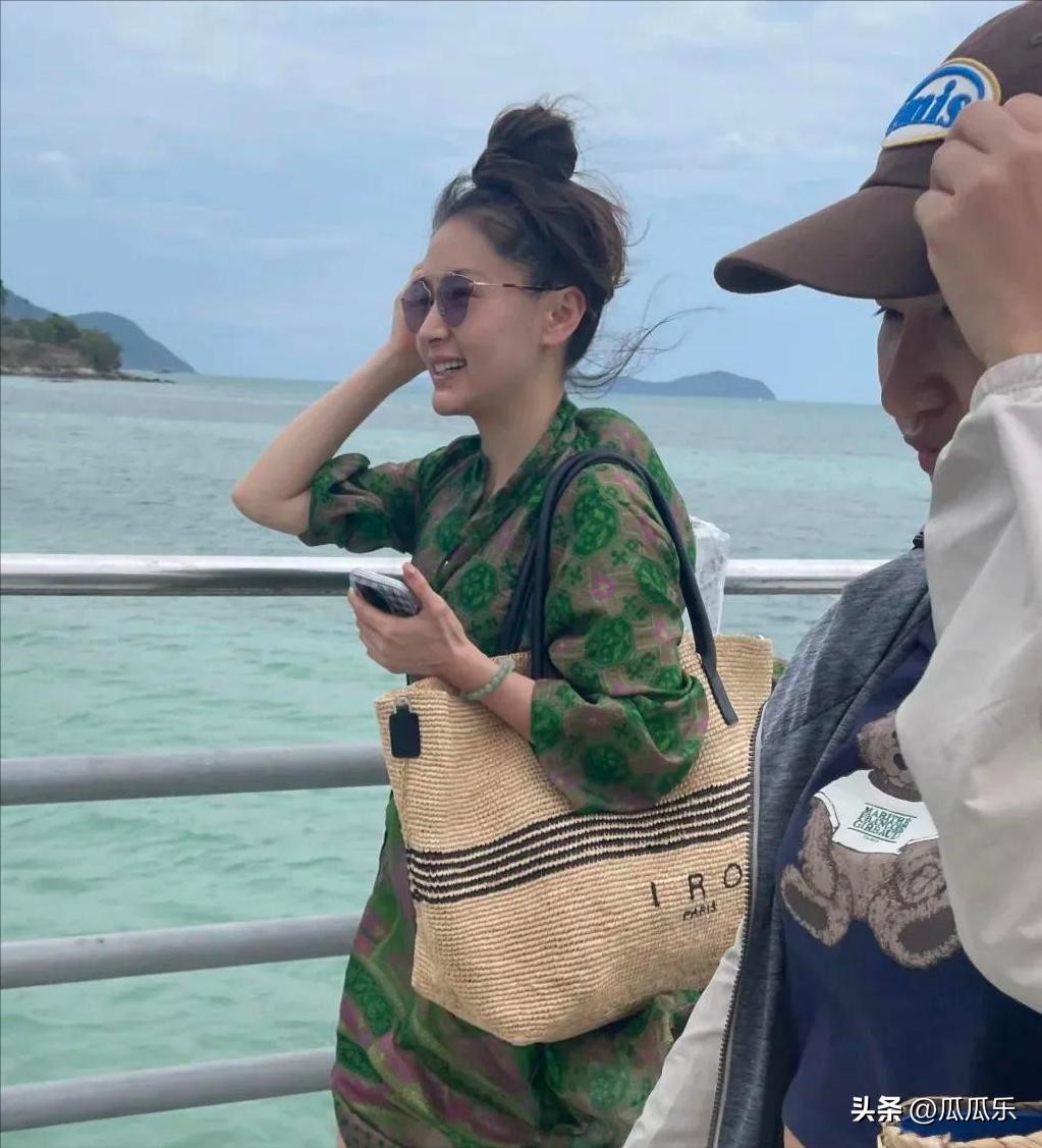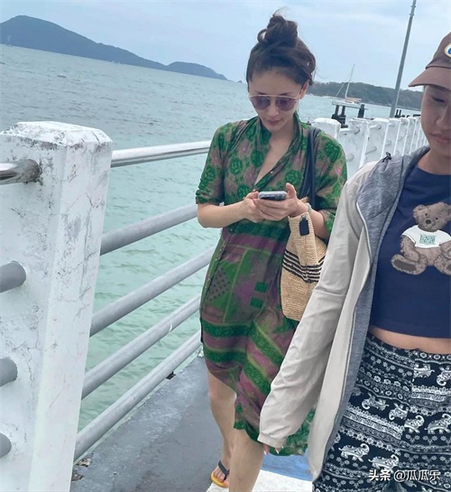在4月2日这天她出现在了普吉岛的海海边,只见她穿了一身绿色带花的长裙。