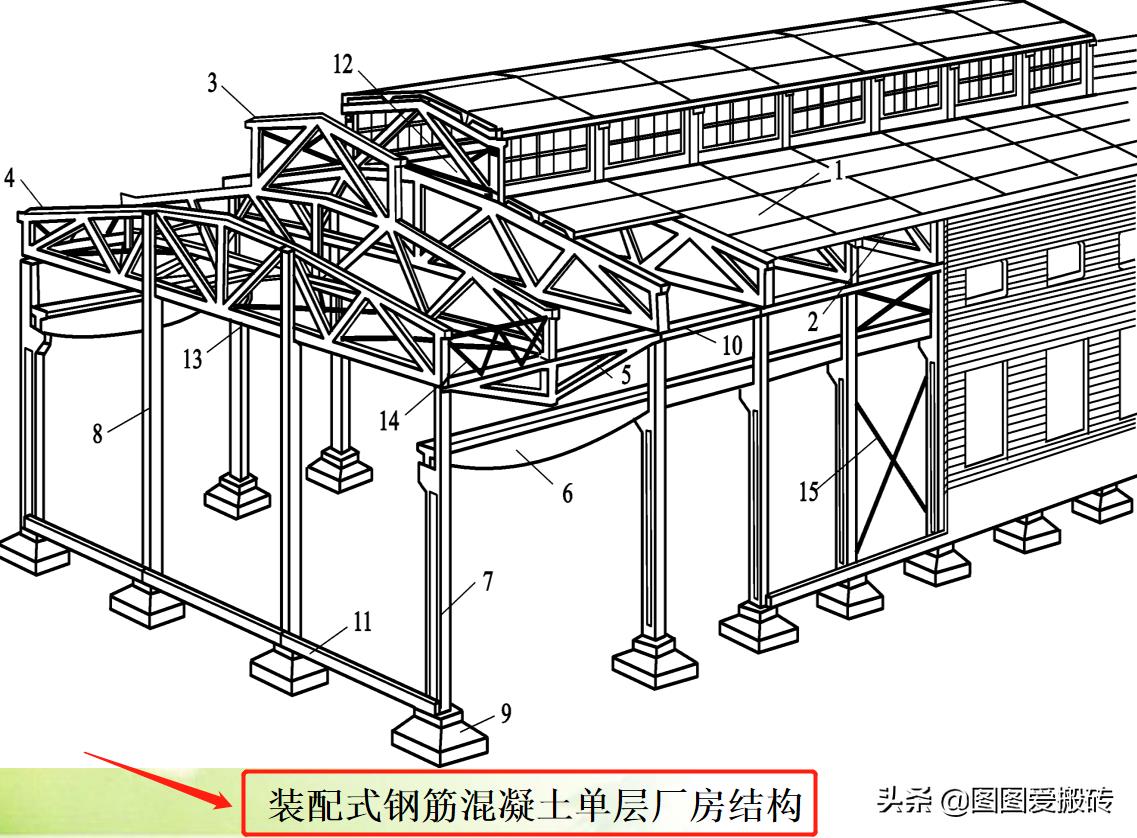 屋面:主要由各种屋面板材组成,平铺于屋架上,承受外面荷载。