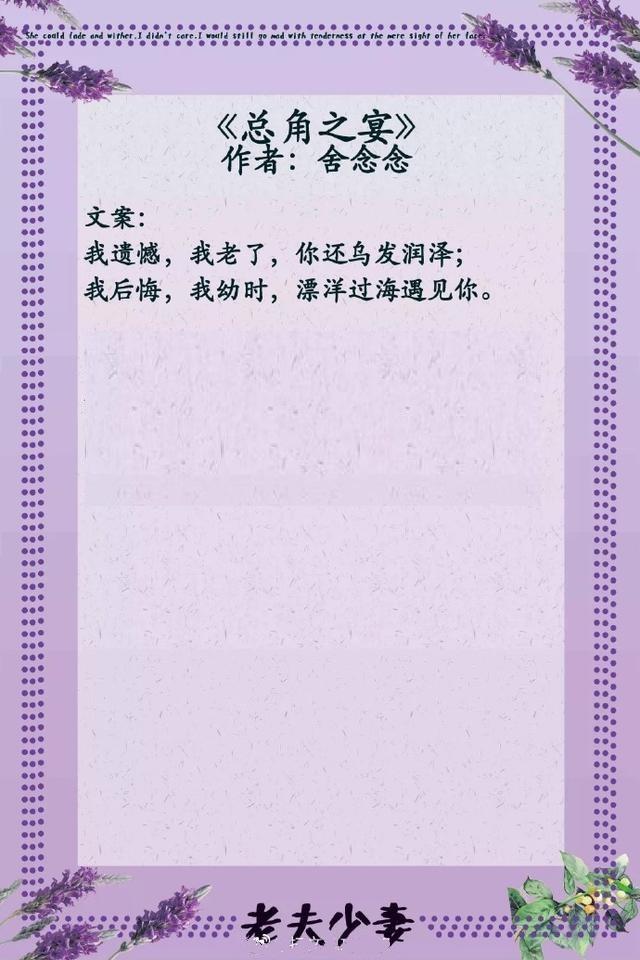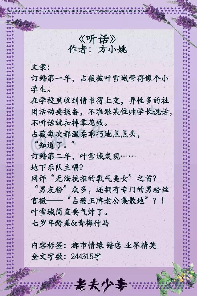 今天给大家盘点一波男主年龄比女主大很多的老夫少妻文,基本上都是现言,喜欢这类文的朋友自行收藏哦。