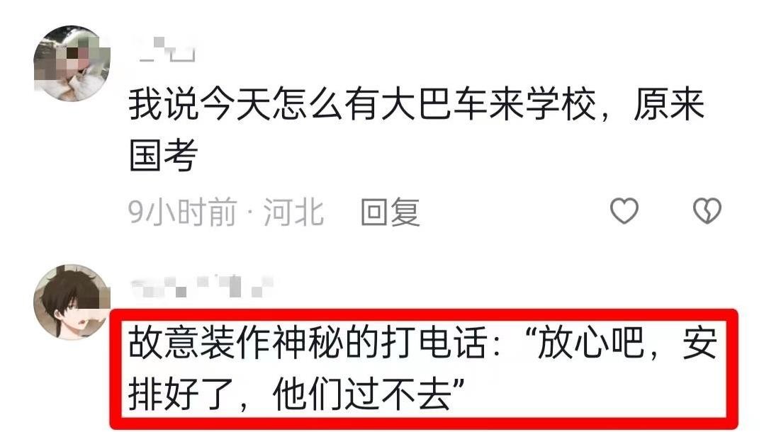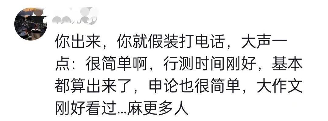 随着时间推移,考生之间也通过幽默来缓解彼此的紧张气氛。一些考生以自信或戏谑的方式表达了自己对考试的感受。比如有人大声宣称“国考就应该有我这样的人才”,而旁边另一位同伴则嬉笑回应,“希望你的自信能抵消掉你缺少复习的时间”。