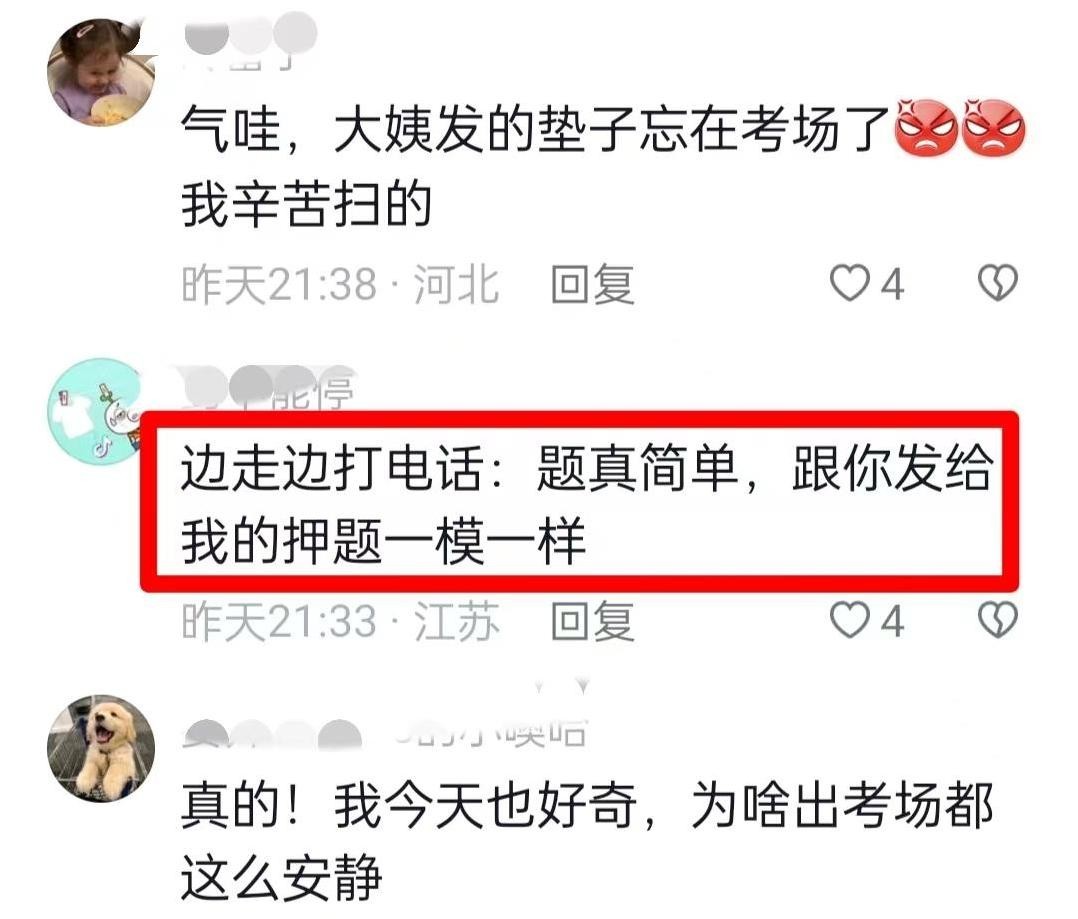 在这种氛围中,网友们也不失时机地分享了自己考后轻松幽默的言论。社交媒体上,各种考后感慨、滑稽段子和表情包此起彼伏,成为了大家互相慰藉的方式。有人调侃说“刚出考场感觉自己可以直接参加喜剧大赛了”,而另一位考生则自嘲,“我的答案是独一无二的,因为只有我自己能看懂”。