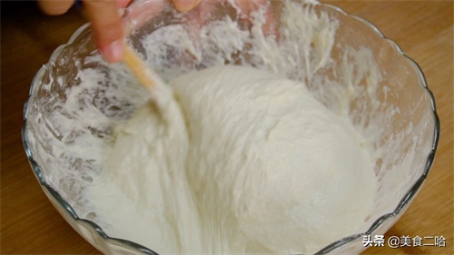 2、用200毫升的温水和面,水温控制在35摄氏度就可以,这个温度酵母最为活跃,就和小孩子喝的益生菌必要要用37摄氏度以下的水冲开是一个道理的,太热容易把酵母烫死,太凉的话酵母发酵的速度会特别慢。