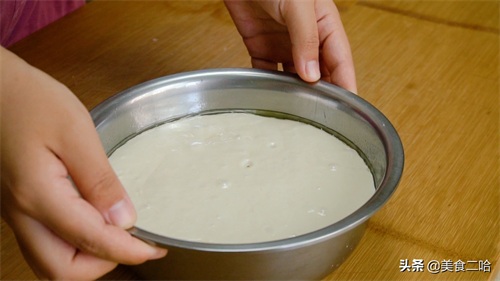 5、面糊发酵好之后体积变大,上面还有很多小气泡。