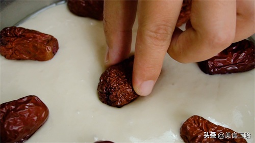 7、为了更好看好吃,我在上面又放了几颗红枣用来增加香甜和枣香味,当然你也可以放其他的坚果或者葡萄干都是可以的。