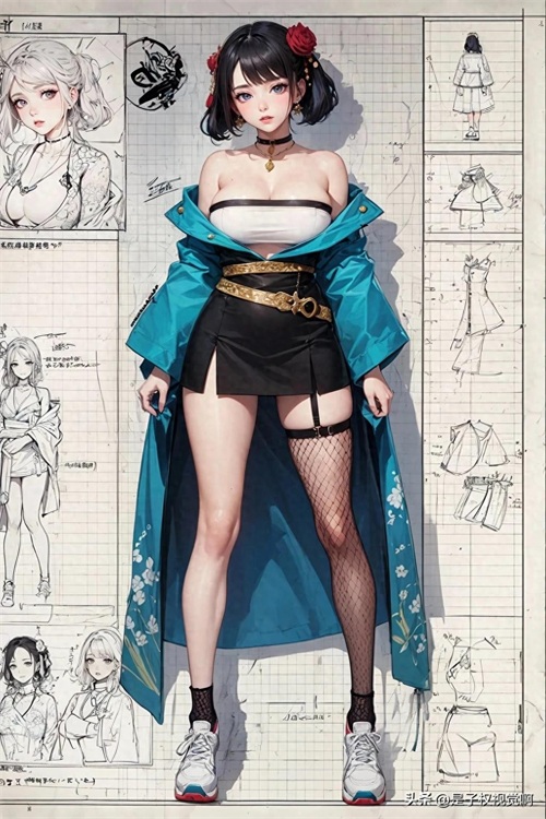 在这幅画面中,还可以看到技术图表和人物设计表,展示出极致的细节和精湛的工艺。整体画面极其精细,仿佛一幅8K级别的杰作,每一个细节都被呈现得淋漓尽致,令人叹为观止。