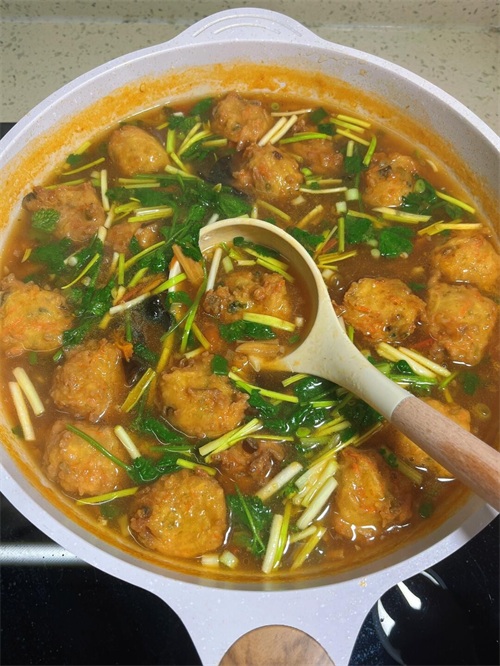 这一碗酸汤丸子,酸辣开胃,简直就是“下饭神器”。喝一口汤,暖到脚尖;夹一个丸子,鲜香在嘴里绽放。