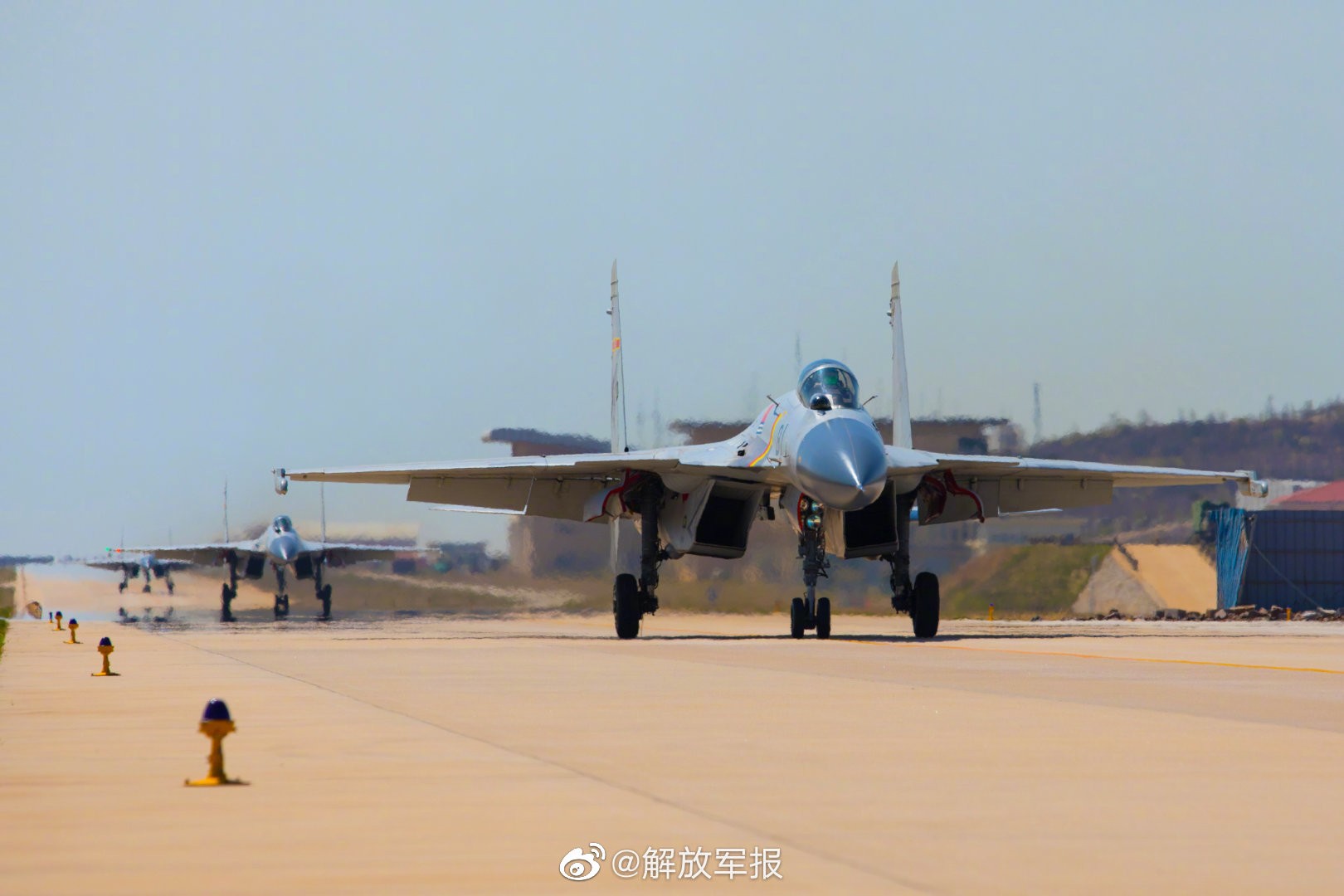 【#歼15高清大图# 走你!】近日,海军航空大学某基地组织多架战机进行编队飞行、低空飞行等高强度多课目飞行训练,锤炼舰载机飞行员过硬飞行本领。戳大图↓看飞鲨展翅!#军旅正青春# (姜涛 巫同宇)
