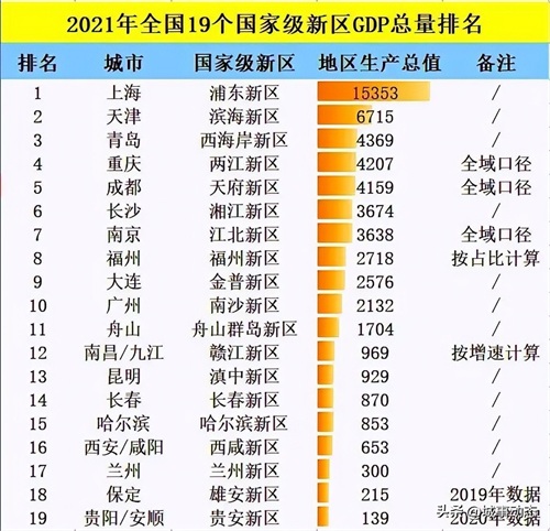 ✍ 从19个国家级新区经济总量的排名来看,最早的浦东、滨海及两江等国家级新区都具有较为明显的优势!