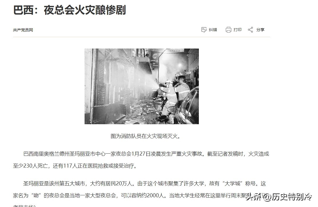 3、原文登载于共产党员网2013年1月28日:《巴西:夜总会火灾酿惨剧》