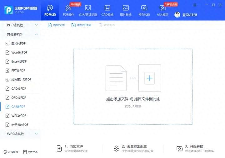 一个专业的PDF转换器,能够将多种格式的文件转换为PDF格式,包括caj、图片、Word、PPT等等,不仅支持批量转换caj,转换的速度还很快,能把caj转换为需要的PDF格式,方便大家在不同场景下观看和打印caj文件中的内容。